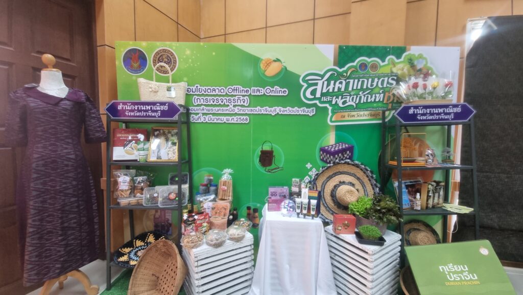 วันที่ 3 มีนาคม 2568 จังหวัดปราจีนบุรี ที่ผ่านมา โดยสำนักงานพาณิชย์จังหวัดปราจีนบุรี จัดแถลงข่าวและจัดกิจกรรมเชื่อมโยงตลาด Offline/ Online (เจรจาธุรกิจ)