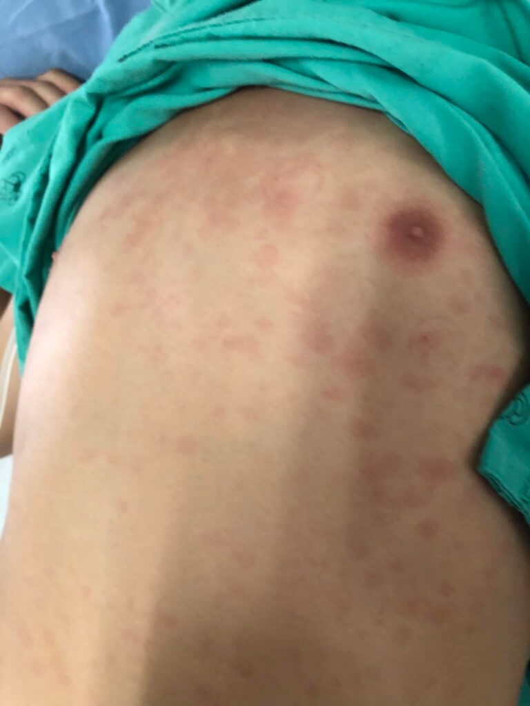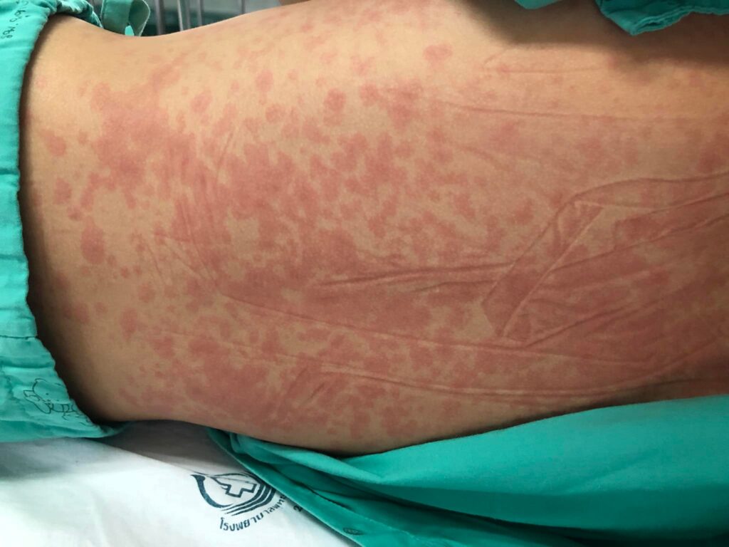 4)อาการ ตาแดง ผื่น ท้องเสีย มือเท้าบวม ต่อมน้ำเหลืองโต อื่นๆ พบน้อยกล้ามเนื้อหัวใจอักเสบ ตับ ไต วาย