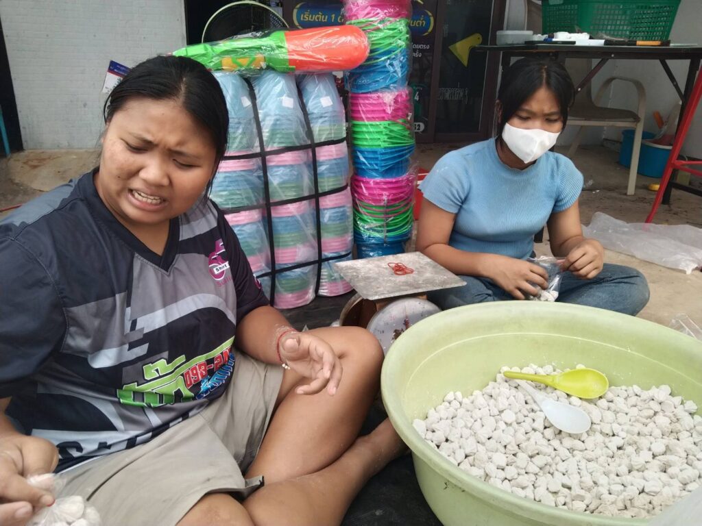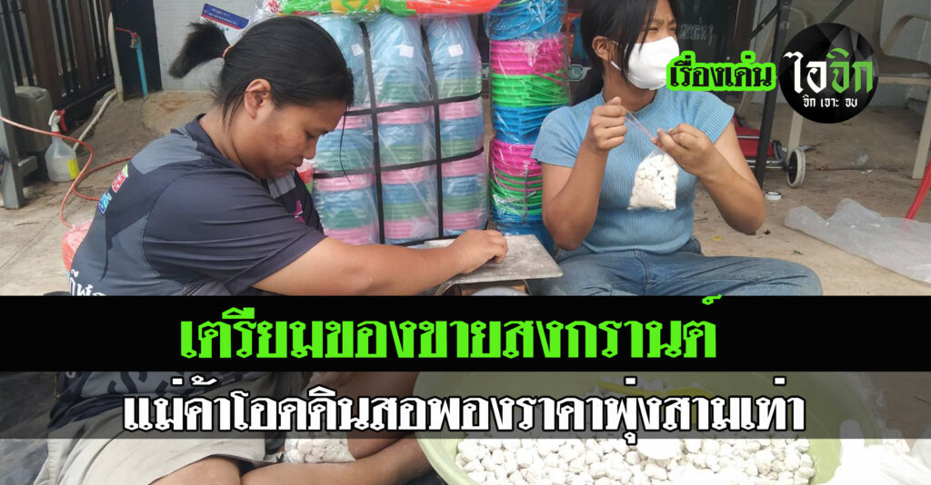 แม่ค้าเร่งมือชั่งกิโล แพ็คดินสอพองขายต้อนรับสงกรานต์ โอดราคาดินสอพองพุ่ง 3 เท่าตัว แต่ก็ยังแอบหวังว่าปีนี้ยอดขายจะทะลุเป้า หลังจากหน่วยงานราชการประกาศจัดงานเทศกาลมหาสงกรานต์ 21 วัน