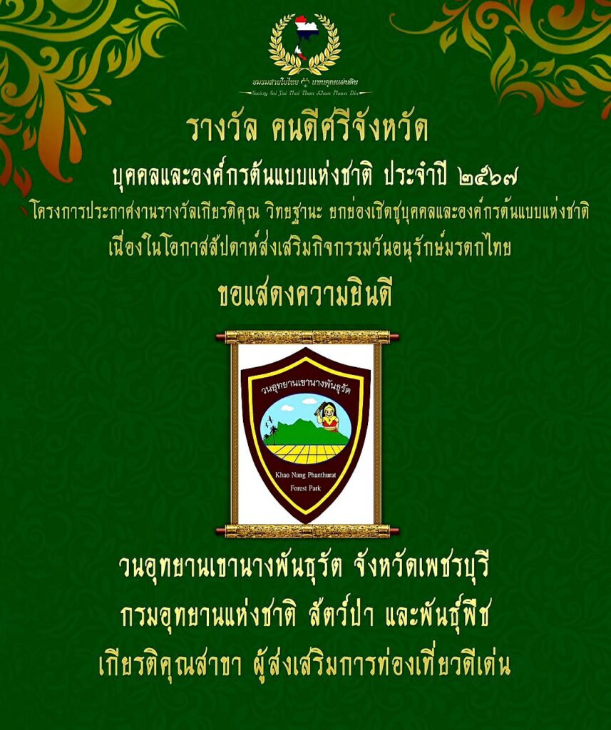 วนอุทยานเขานางพันธุรัต คว้ารางวัล ‘’คนดีศรีจังหวัด สาขา ผู้ส่งเสริมการท่องเที่ยวดีเด่น”